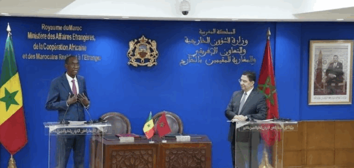 Dans un communiqué conjoint rendu public, lundi 10 novembre 2025 à l’issue des entretiens qu’ils ont eus à Rabat, le ministre des Affaires Etrangères, de la Coopération Africaine et des Marocains Résidant à l’Etranger, Nasser Bourita et son homologue sénégalais, Cheikh Niang, les deux parties se sont félicitées de l’excellence et du caractère exemplaire des relations entre le Royaume du Maroc et la République du Sénégal, fondées sur des liens historiques, spirituels et humains exceptionnels, et nourries par une amitié indéfectible entre SM le Roi Mohammed VI, et Bassirou Diomaye Diakhar Faye, Président de la République du Sénégal.