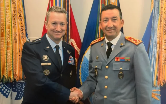 Dans le cadre des travaux de la 14e réunion du Comité Consultatif de Défense maroco-américain, tenue du 14 au 16 avril à Washington DC, le Général de Corps d’Armée, Mohammed Berrid, Inspecteur Général des Forces armées Royales (FAR) et Commandant la Zone Sud, s’est entretenu avec le Général Dan Caine, Chef d’Etat-Major des Armées (CEMA) des États-Unis.