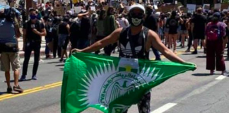 Le drapeau du Raja de Casablanca brandi lors des manifestations aux...