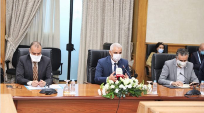 Le ministre de l'Intérieur, Abdelouafi Laftit, accompagné du ministre de la Santé, du ministre de l'Industrie, du Commerce, de l'Economie verte et numérique, et de la ministre du tourisme, de l'artisanat, du transport aérien et de l'économie sociale, a...